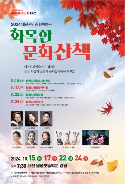 한편 올해 마지막‘화목한 문화 산책’은 11월 한밭대학교 아트홀에서 개최된다.