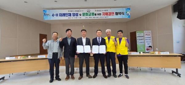 [Ytv영상스토리] 홍성군은 12일 홍성군 4-H본부와 제주시 한림읍 4-H본부가 제주특별자치도 농업기술원 서부농업기술센터 농업인 교육관에서 자매결연 협약을 체결했다.
