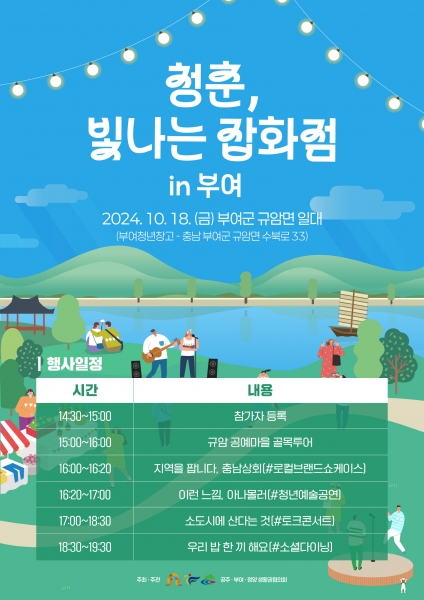 ‘청춘, 빛나는 잡화점 in 부여’는 청년들의 지역정착 사례를 공유하고 실질적인 공감과 소통을 위해 다양한 프로그램을 진행할 예정이다.