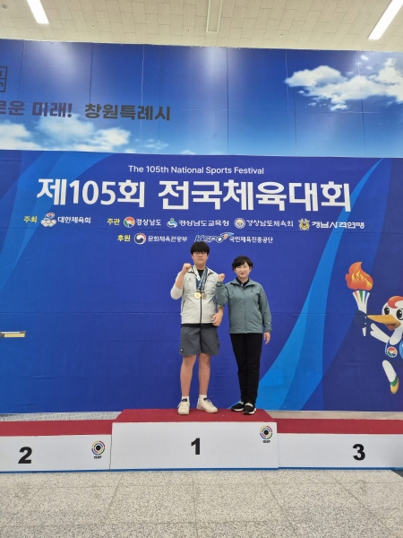 김채윤 학생이 13일에 획득한 자유형 800M 금메달에 이어 15일 진행된 수영 자유형 400M 경기에서 또다시 금메달을 따내며 대회 2관왕을 달성했다.