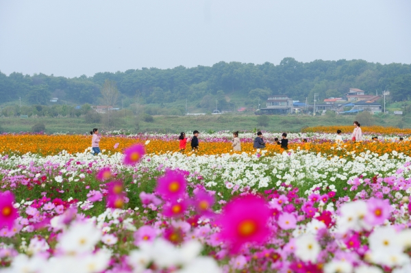 백마강에 인접한 13헥타르 대규모 코스모스 단지와 1.4킬로미터에 이르는 백제문화단지 도로변 코스모스길, 그리고 백마강 변 억새 군락지가 어우러져 장관을 이루고 있다.