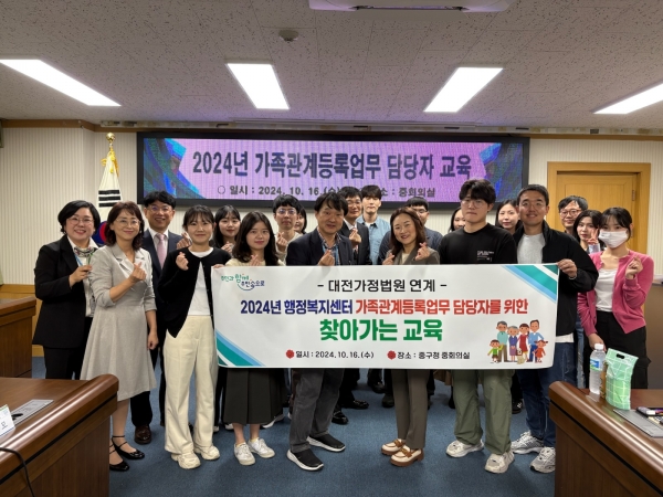[Ytv영상스토리] 대전 중구는 지난 16일 구청 중회의실에서 구청 및 17개 동 행정복지센터 가족관계등록업무 담당자를 대상으로 ‘2024년 가족관계등록업무 담당자 직무역량 강화 교육’을 실시했다고 전했다.