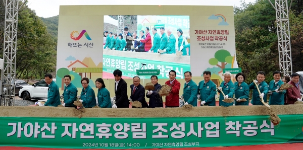 시는 이날 운산면 신창리 일원에서 복지단지 조성의 첫 시작 단계인 가야산 자연휴양림의 착공식을 개최했으며 이 시장을 비롯한 기관·단체장, 지역주민 등 150여명이 참석했다.