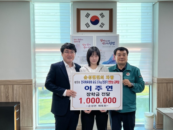 장학금 전달식은 순성면 행정복지센터 면장실에서 진행됐으며 순성면장, 체육회장, 체육회 이사들 그리고 전국체육대회에서 금메달을 수상한 이주연 선수가 참석했다.