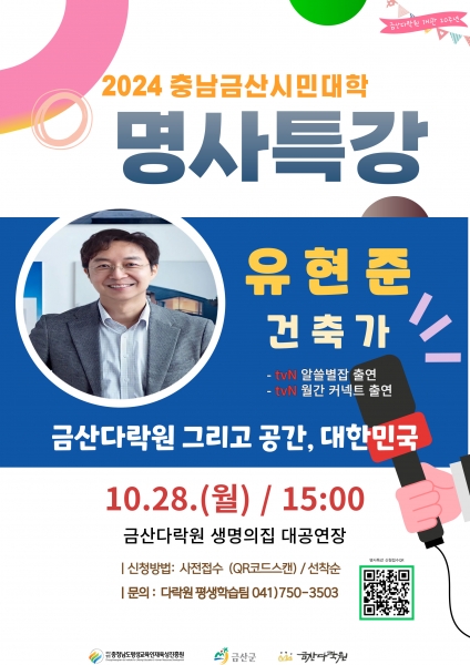 금산다락원, 충남금산시민대학 건축가 유현준 교수 명사 특강