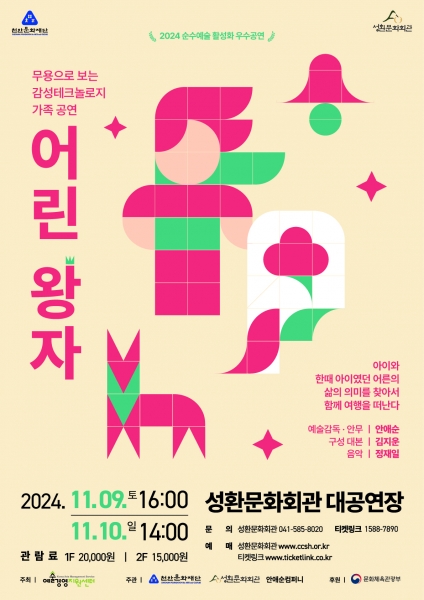 예술경영지원센터가 주최하고 문화체육관광부의 후원으로 열리는 이 공연은 안애순 무용단의 어린왕자 공연으로 2024 순수예술 활성화 우수공연이고 국내외 무대에서 인정받는 안무가인 안애순의 작품이기도 하다.