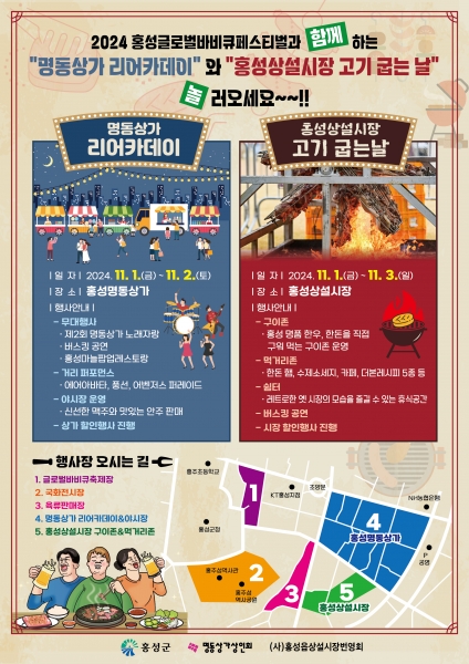 이용록 홍성군수는 “이번 바비큐페스티벌은 축제장뿐만 아니라 인근 명동상가와 홍성상설시장과과 연계해 더욱 풍성한 먹거리와 볼거리, 즐길 거리를 준비했다”며“방문객들께서 축제와 함께 지역 상권의 특별한 매력도 함께 경험하시길 바란다”고 전했다.