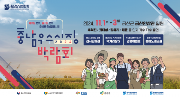 전국시장상인연합회 충남지회가 주관하고 중소벤처기업부, 충남도, 금산군이 주최하는 이 행사는 충남지역 전통시장의 우수한 농특산물을 소개하고 시장 상인들의 판매촉진을 통해 지역경제 활성화를 도모하고자 마련됐다.