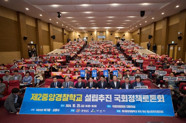 앞서 어기구·이재관·이현희·박용갑 국회의원들도 토론장을 찾아 제2중앙경찰학교 아산시 유치를 연대지지로 응원했고 시민들은 유치 열망과 의지를 담은 피켓 퍼포먼스를 펼치기도 했다.