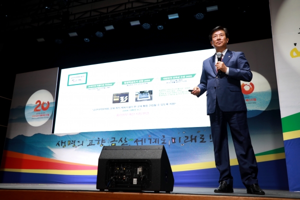 [Ytv영상스토리] 박범인 금산군수는 지난 25일 금산다락원 대공연장에서 금산다락원의 지난 20년을 회고하고 앞으로의 미래 구상을 제시하는 ‘다락원의 어제, 오늘 그리고 내일’ 강연에 나섰다.