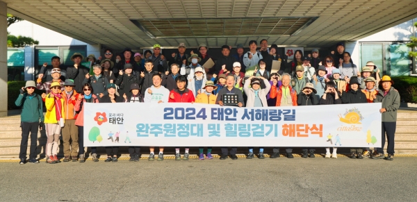 군은 지난 26일 태안군청에서 태안 서해랑길 완주 원정대원 60여명과 가세로 군수 등이 참석한 가운데 ‘2024 태안 서해랑길 완주 원정대 및 힐링걷기 해단식’을 가졌다고 밝혔다.
