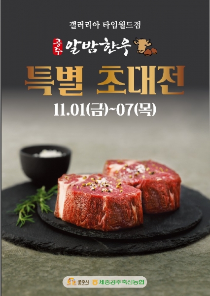 [Ytv영상스토리] 공주시는 오는 11월 1일부터 7일까지 일주일간 갤러리아 타임월드점 한우 먹는 날 기념 공주알밤한우 특별 초대전을 개최한다.