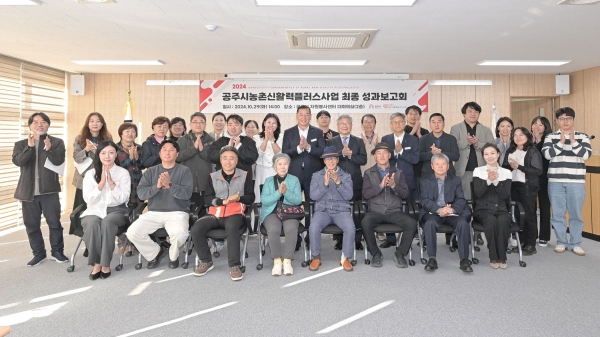 시는 지난 29일 공주시 자원봉사센터에서 최원철 시장을 비롯해 농식품부 중앙계획지원단 김정연 단장, 강석광 시민자치국장, 지역활동가조직 대표 등 40여명이 참석한 가운데 ‘농촌신활력플러스사업 성과보고회’를 개최했다.