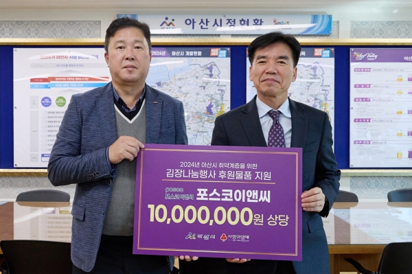[Ytv영상스토리] 포스코이앤씨가 아산시 취약계층 김장나눔 행사를 위해 1,000만원 상당의 후원물품을 지원하기로 하고 지난 30일 전달식을 가졌다.