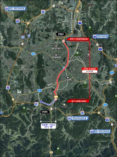 이 사업은 안영IC와 천변고속화도로를 연결하는 도심권 내부순환망 구축이 골자로 원도심 개발사업 촉진 등 교통인프라 공급에 따른 생활권 연계 강화와 지역간 균형발전의 촉매제 역할도 담당한다.