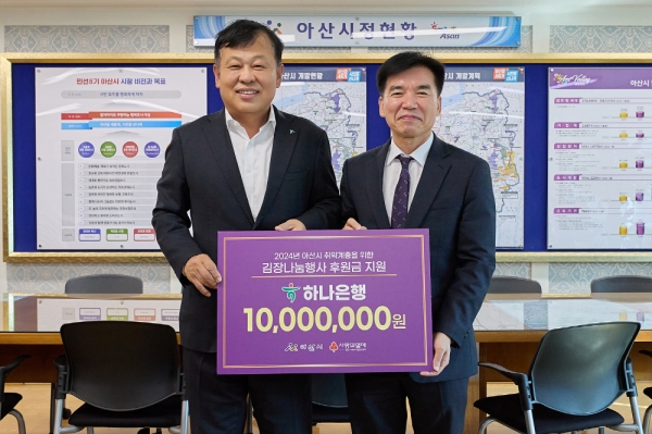 [Ytv영상스토리] 하나은행이 지난 31일 아산시에 취약계층 대상 김장나눔행사를 위한 후원금 1,000만원을 전달했다.