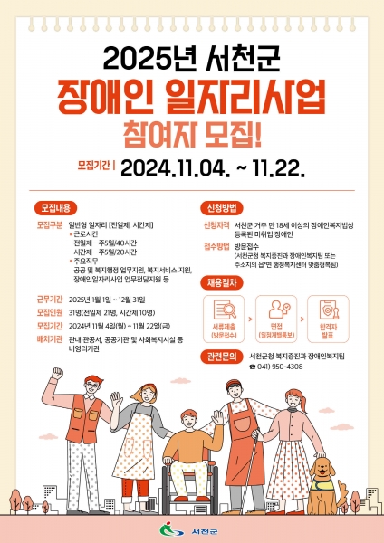서천군, 오는 22일까지 2025년 장애인일자리 모집