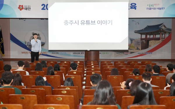 [Ytv영상스토리] 태안군이 1일 군청 대강당에서 공직자 200여명이 참석한 가운데 ‘충주맨’ 충주시 김선태 주무관을 강사로 초청, ‘충주시 유튜브 성공사례로 알아보는 적극행정’을 주제로 강의를 진행했다고 밝혔다.
