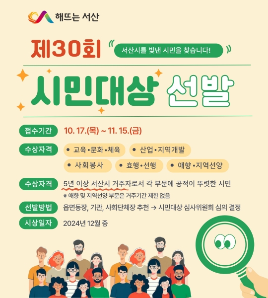 서산시, 제30회 서산시 시민대상 후보자 접수