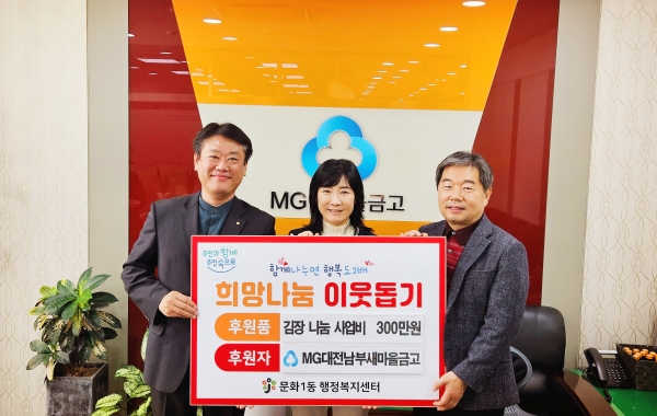 MG대전남부새마을금고 문화1동 지역사회보장협의체에 사업비 기탁