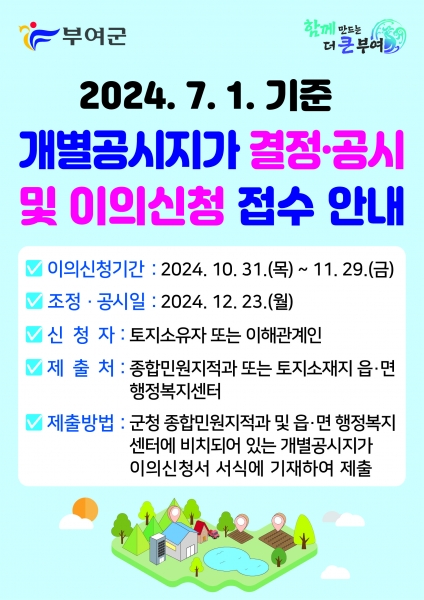 부여군, 개별공시지가 결정·공시에 따른 이의신청 안내