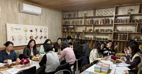 청양교육지원청, 학교 영양사, 청양군학교급식학부모건강먹거리지킴이단, 공공급식지원센터를 대상으로 대치면에 위치한 ‘꽃이 머무는 자리’에서 꽃차를 활용한 블렌딩 티 만들기 체험교육을 실시했다.