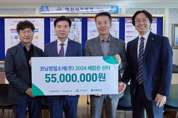 [Ytv영상스토리] 지역사회의 삶의 질 개선을 위한 사회공헌 활동에 앞장서고 있는 코닝정밀소재가 지난 7일 초록우산과 함께 아산시청을 방문해 ‘2024 해맑은 산타’ 사업 후원금으로 총 5천5백만원을 전달했다.