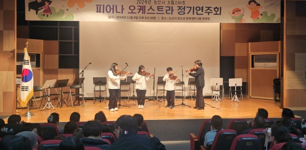 [Ytv영상스토리] 논산시는 8일 논산시청소년문화센터 3층 극장에서 드림스타트 대상 아동 및 학부모 등 160여명이 참석한 가운데 ‘2024년 드림스타트 피어나오케스트라 정기연주회’를 개최했다.