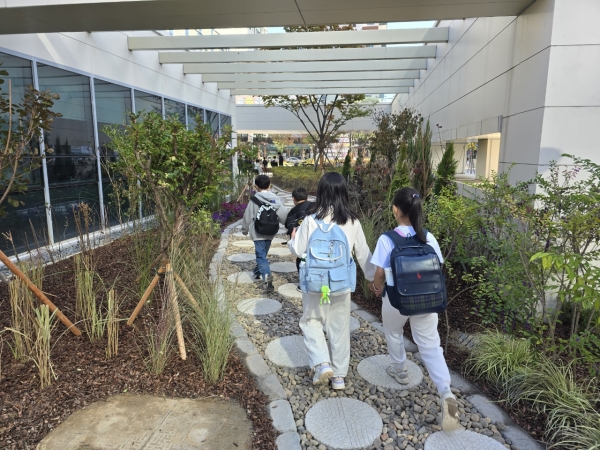 정원 조성이 완료됨에 따라 학생들은 아름다운 정원과 산책로를 따라 등·하교할 수 있게 된다.