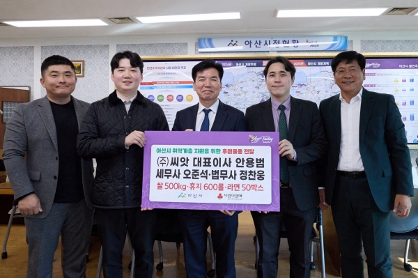 ㈜씨앗 대표이사 안용범, 세무사 오준석, 법무사 정찬웅…아산시 취약계층에 생필품 후원