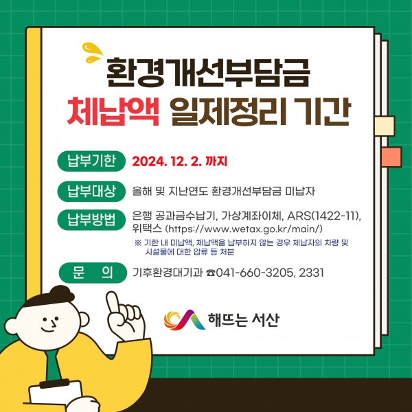 서산시, 하반기 환경개선부담금 체납액 일제정리 기간 운영