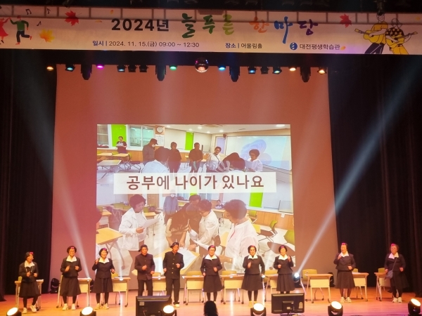 이번 행사는 하모니카 연주와 우리춤 축하공연을 시작으로 ‘배움의 기쁨과 나눔의 즐거움’ 이라는 주제로 대전늘푸른학교 학습자들이 준비한 시 낭송, 가요 독창·합창, 댄스, 역할극 등 24개의 프로그램이 다채롭게 진행됐다.