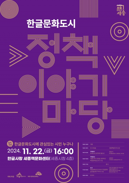 [Ytv영상스토리] 세종시와 세종시문화관광재단이 오는 22일 오후 4시 세종책문화센터에서 ‘한글문화도시 정책 이야기마당’을 개최한다.
