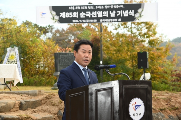 박정현 부여군수는 기념사를 통해 “선열들께서 각고의 노력으로 일궈낸 오늘날의 평화와 번영을 미래로 계승하는 것이 우리가 영원히 지켜나가야 할 최소한의 예우”며 “부여군은 국가에 헌신한 국가유공자의 명예로운 삶을 지원하고 기억하고 기리는 보훈 선양사업을 한층 더 강화해 나가겠다“라고 말했다.