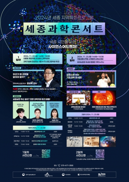 이번 행사는 세종 시민을 비롯해 과학기술에 관심이 있는 누구나 참여할 수 있으며 홍보물에 삽입된 정보무늬코드를 통해 온라인 사전 신청도 가능하다.