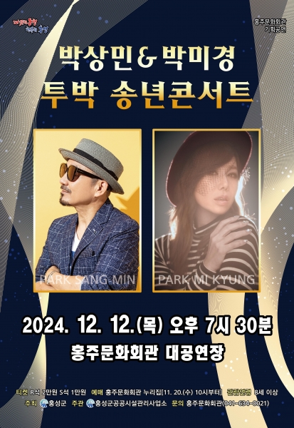 [Ytv영상스토리] 홍성군은 오는 12월 12일 오후 7시 30분 가요계를 대표하는 레전드 가수 ‘박상민’과‘박미경’ 이 함께하는 특별한 송년콘서트를 개최한다.