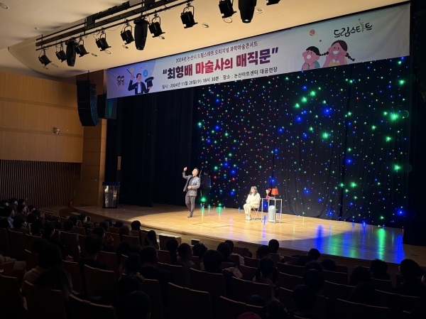[Ytv영상스토리] 논산시는 지난 20일 논산아트센터 대공연장에서 2024년 드림스타트 오리지널 과학마술콘서트 ‘최형배 마술사의 매직문’ 공연을 선보였다.