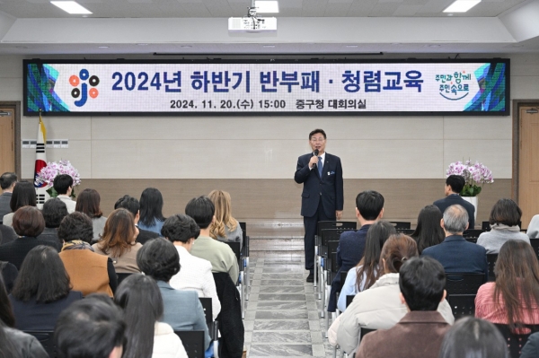 한편 중구는 조직 내 청렴 문화 확산과 청렴도 등급 향상을 목표로 반부패 청렴도 향상 종합추진계획을 수립해 △구청장 청렴서한문 게시 △청렴골든벨 △청렴협의체 운영 △청렴 클린 메시지 발송 △공직 기강 확립을 위한 상시 감찰 등 다양한 시책을 추진하고 있다.