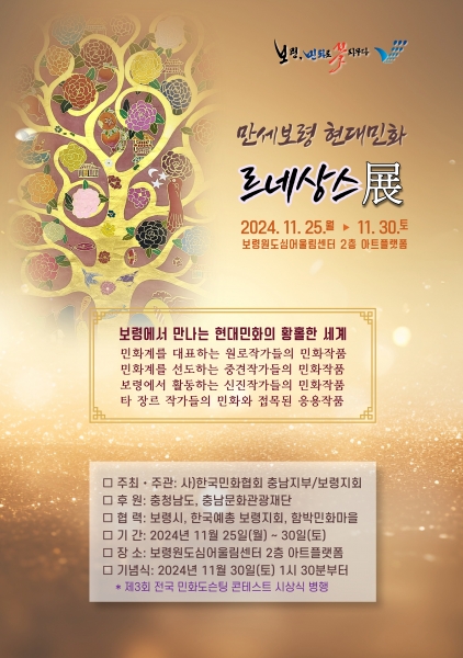[Ytv영상스토리] 보령시는 오는 11월 25일부터 30일까지 보령원도심어울림센터 2층 아트플랫폼에서 ‘만세보령 현대민화 르네상스전’을 개최한다고 밝혔다.