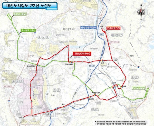 한편 대전 도시철도 2호선 트램 건설사업은 총사업비 1조 5,069억원으로 총연장 38.8km 정거장 45개소, 차량기지 1개소가 2028년 개통을 목표로 추진되고 있다.