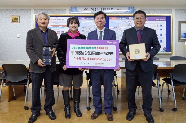 [Ytv영상스토리] 아산시가 지난 21일 충남 강하게공부하는기업인회로부터 관내 취약계층 지원을 위한 500만원 상당의 겨울용 목도리 100개를 후원받았다.