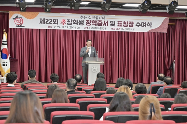 이날 수여식에는 최원철 공주시장과 구기남 공주교육지원청 교육장, 장원석 효장학회 이사장과 이사, 학부모 등 100여명이 참석했다.