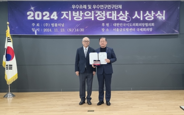대한민국시도의회의장협의회가 후원한 이번 지방의정대상은 지역사회와의 긴밀한 소통과 헌신적인 의정활동을 펼친 지방의원들을 발굴·포상해 지역정치의 전문성과 신뢰성을 높이기 위해 제정됐다.