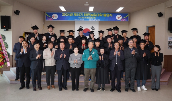 [Ytv영상스토리] 태안군이 지난 26일 태안군농업기술센터 대강당에서 제19기 태안농업대학 졸업생 25명 및 관계자 등이 참석한 가운데 ‘2024년 제19기 태안농업대학 졸업식’을 개최했다고 밝혔다.