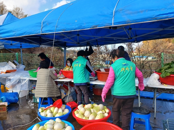 이들은 배추 2,000포기를 김장 김치로 만들어 관내 46개 경로당, 마을 곳곳의 취약계층에게 전달했다.