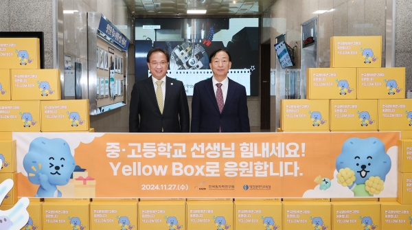 [Ytv영상스토리] 대전시교육청은 11월 27일 한국원자력연구원으로부터, 유성구 중·고등학교 교원들을 응원하는 ‘옐로박스’ 2,020개를 기탁받았다고 밝혔다.