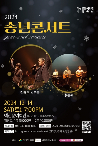 [Ytv영상스토리] 예산군문예회관은 오는 12월 14일 저녁 7시 2024년 한해를 마무리 하며 군민화합의 장 마련과 군민의 문화욕구 충족을 위한 ‘2024년 송년 콘서트’를 개최한다.