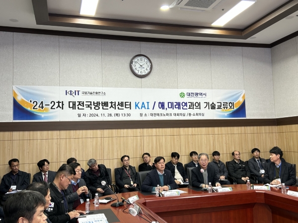 [Ytv영상스토리] 대전시는 28일 대전테크노파크 어울림프라자에서 한국항공우주산업 미래융합기술원 및 해군 미래혁신연구단과 ‘대전국방벤처센터 협약기업 기술교류회’를 개최했다.