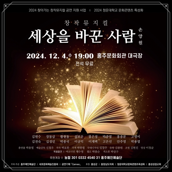 이번 공연은 충남도와 홍성군의 2024 찾아가는 창작뮤지컬 공연 지원사업과 청운대학교 문화콘텐츠 특성화 사업의 일환으로 진행되는 뜻깊은 자리로 한센병 환자들을 위한 요양소 ‘애향원’에서 헌신했던 항일 독립운동가이자 개신교 장로회 목사인 손양원 목사의 감동적인 삶을 그려낸다.