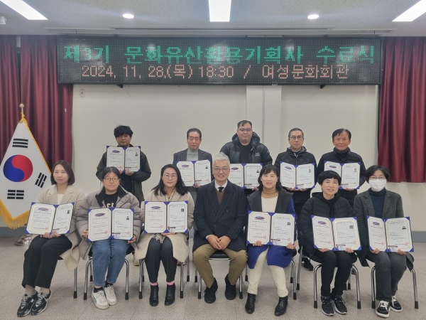 지난 9월부터 10월 말까지 매주 월요일과 목요일 2시간씩 참여한 총 18명의 수강생은 본 교육을 수료해 ‘문화유산활용기획사’ 2급 자격증을 취득했다.